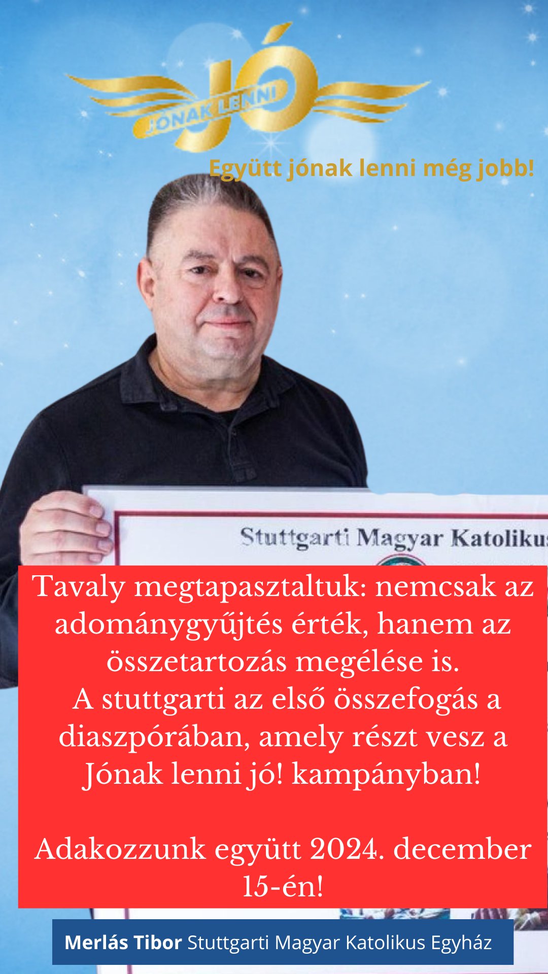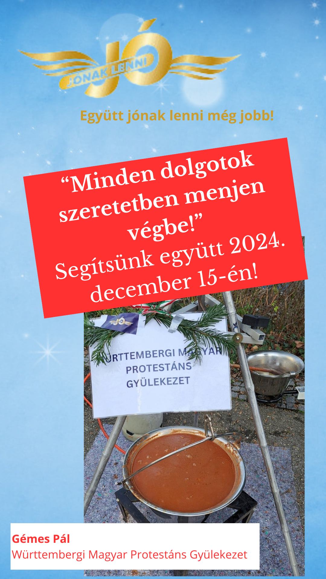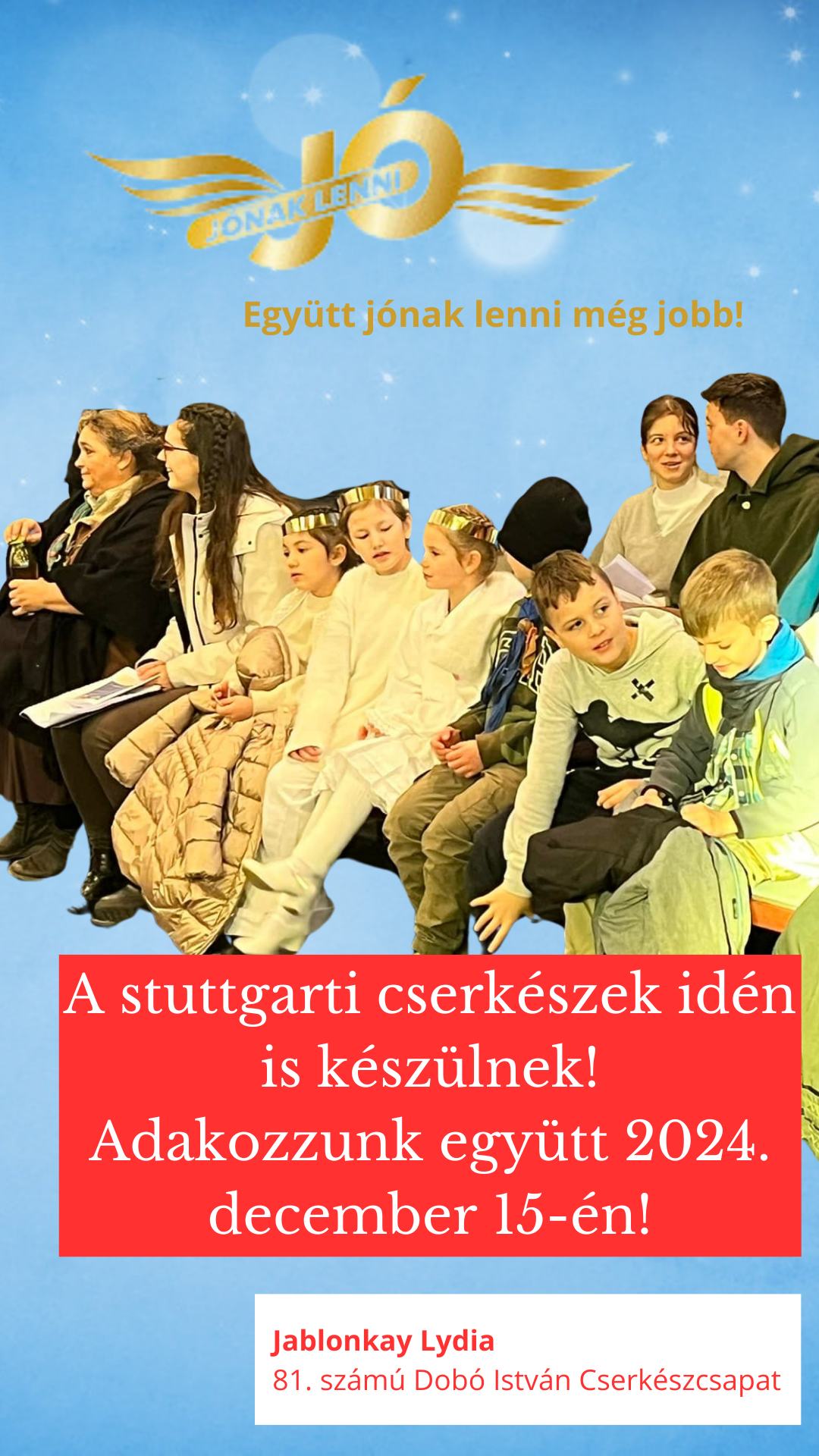2024. december 15-én Egyházközségünk ad otthont a 13. alkalommal megrendezendő „Jónak lenni jó!” – adománygyűjtő akciójának.