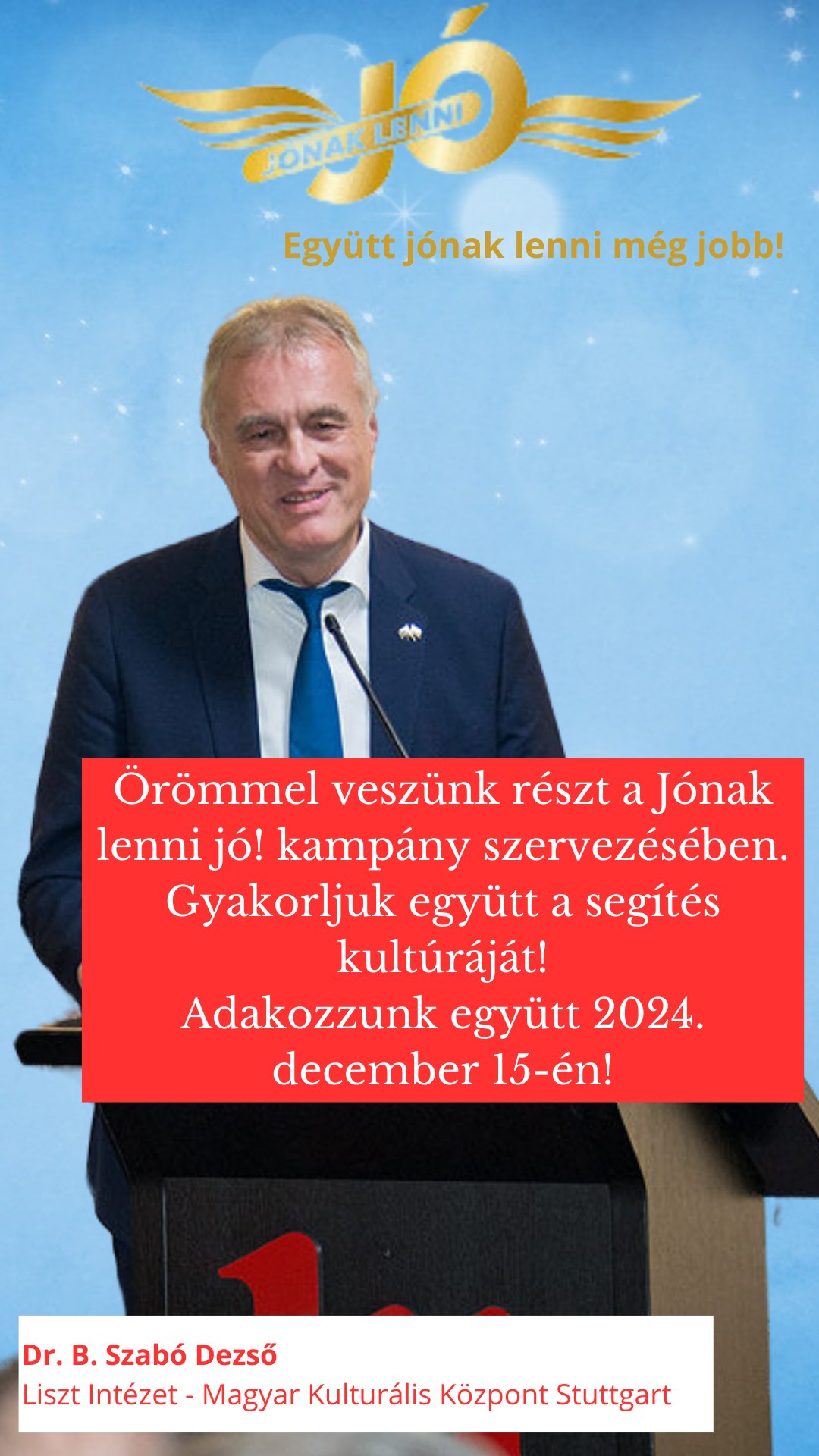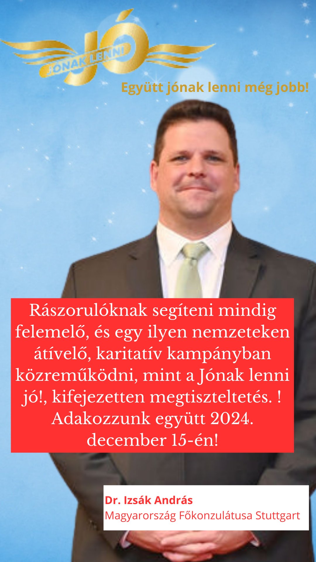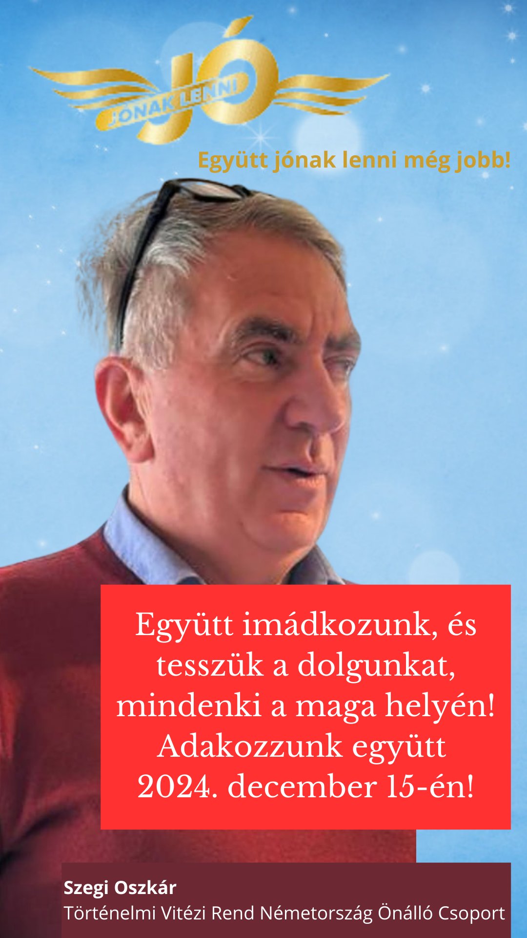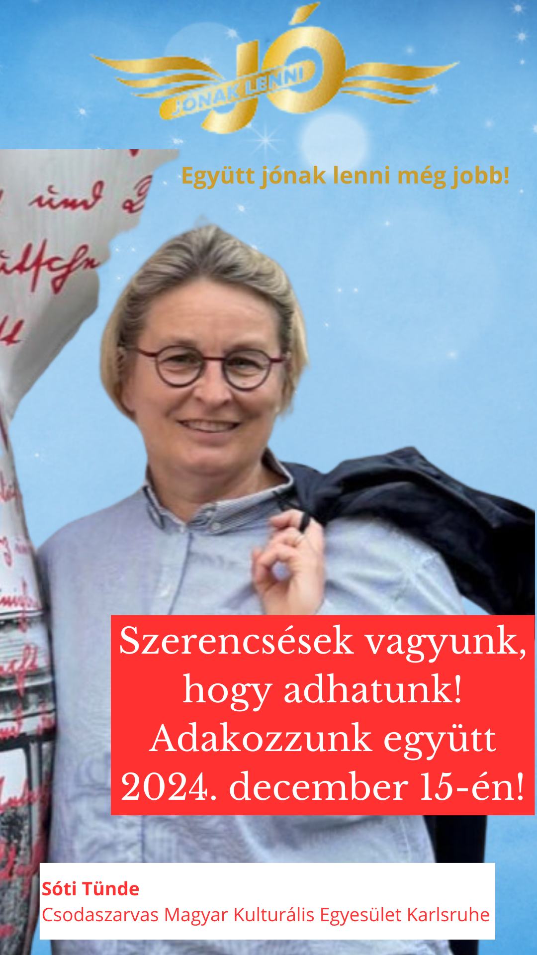 2024. december 15-én Egyházközségünk ad otthont a 13. alkalommal megrendezendő „Jónak lenni jó!” – adománygyűjtő akciójának.